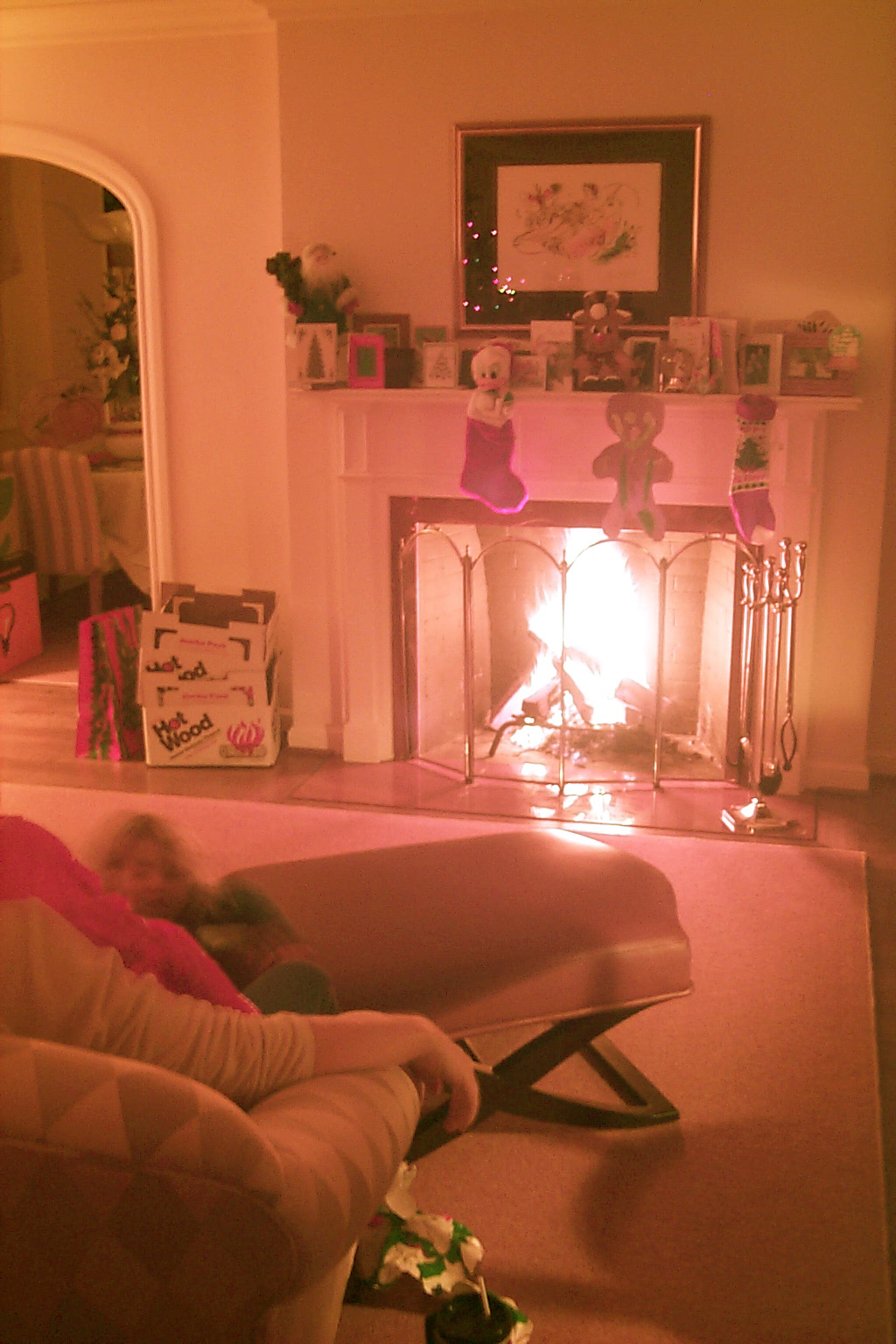 Roaring fire on Christmas Eve.