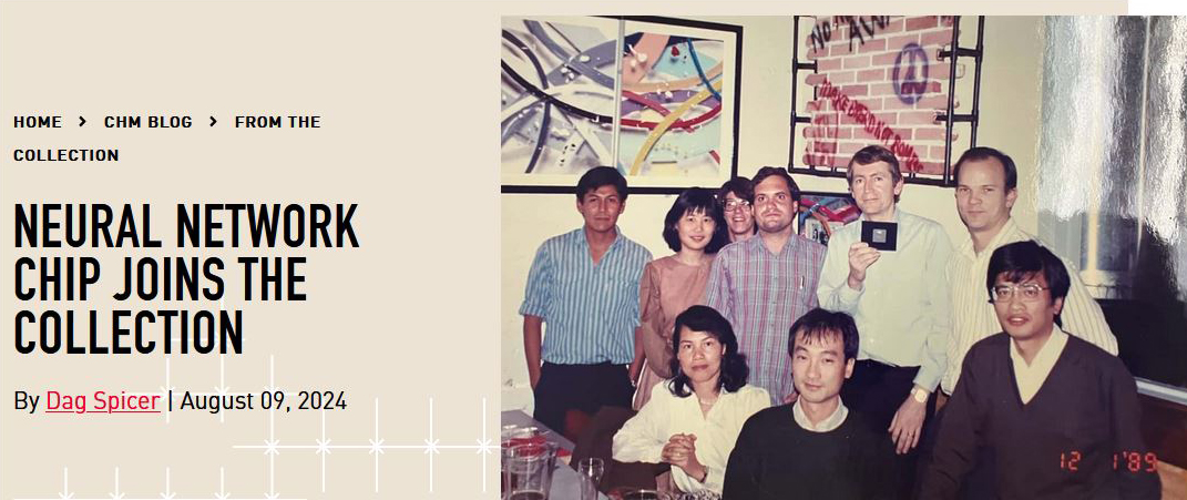 Mark's 1989 Neural Network Chip induction into the Computer History Museum , Electrically Trainable Artificial Neural Network, ETANN. Computationally it is the same as the neural networks used in today's Large Language Models core.