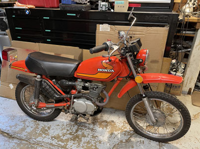 Refurbished Cameron's old Honda XL75. New Seat, levers, mirror, headlight.