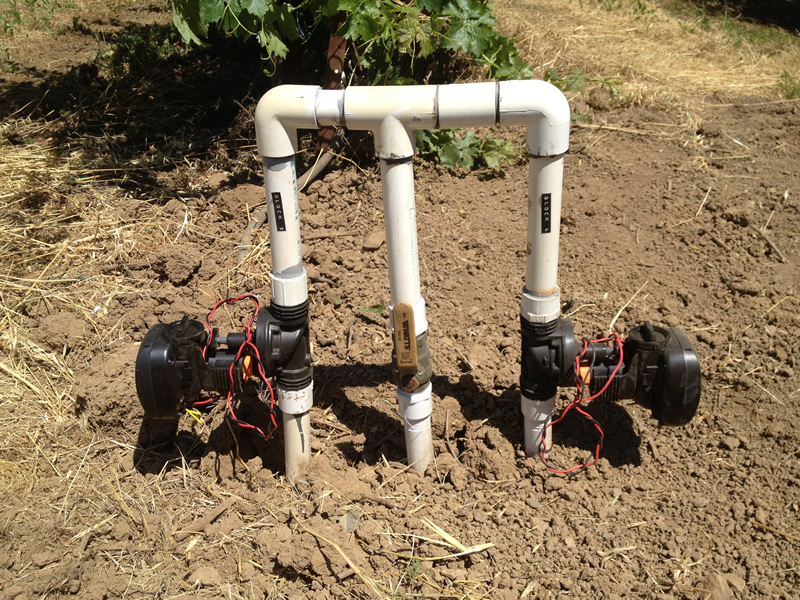 New timer valves on blocks Royal(3) and Bourbon(4) at Crouse Vineyards.