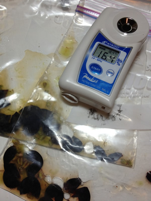Saturday 9/7/13 | Camalie Cave | 3 lugs | 100 lb. scale | 25.7 Brix, 3.4pH, 6.5 g/l T.A. Holler's |