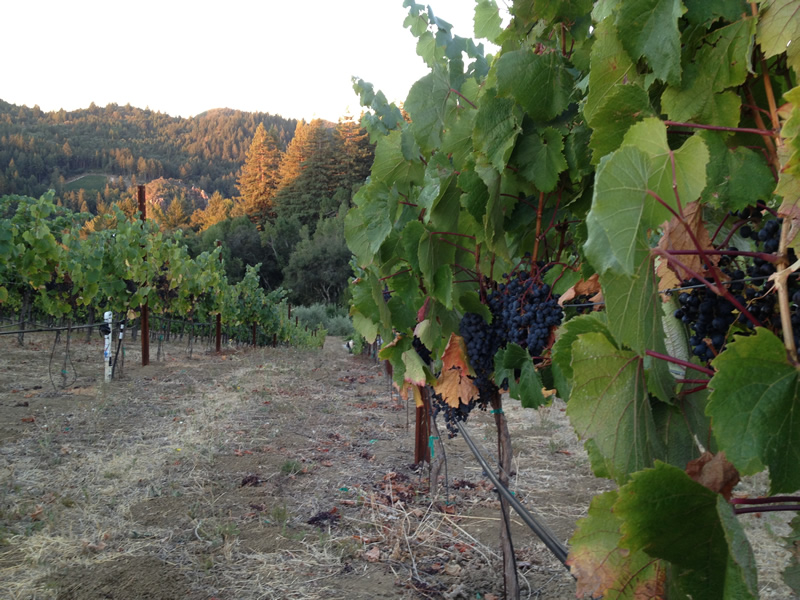 10/2/13 Picked 4.349 tons of Cabernet Sauvignon from Crouse Orleans Block and a fringe of her Block 4. We have harvested 12.1 tons from Crouse Vineyards thus far and expect to harvest 6-7 tons more. Sampled 60 petioles from Orleans block at Crouse Vineyard and sent to Dellavalle lab for analysis of the nutritional status of the vines. The vines are sinescing early or showing some type of nutritional deficiency. The Crouse main well ran mostly dry after giving us 230K gallons. Quite good for a Mount Veeder well. The reservoir on the other hand only provided about 50K gallons of its 300K capacity due to leakage. The vines have each received about 50 gallons which is adequate but low especially for these relatively large old vines being cropped more heavily than in the past. Their old/deep roots help them survive on less water.