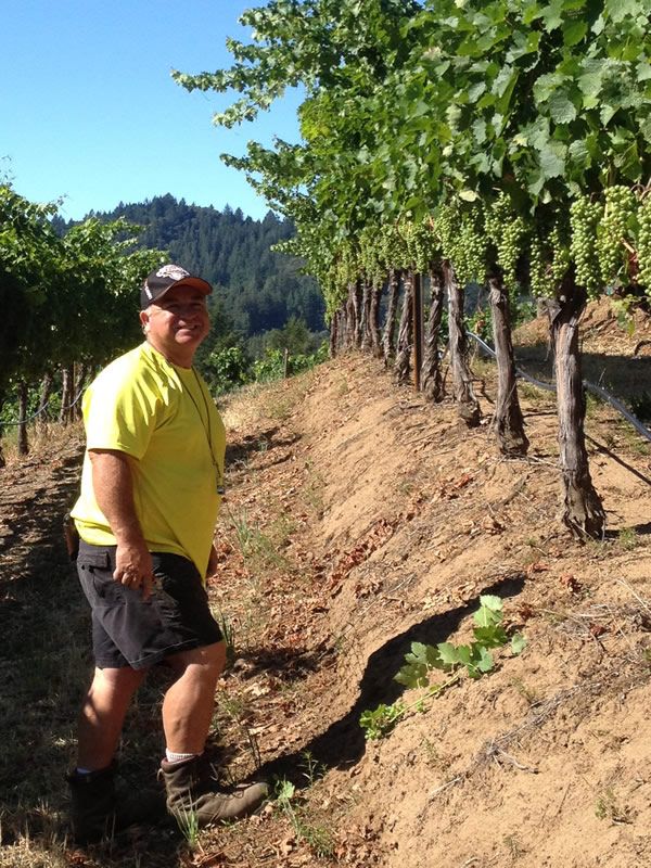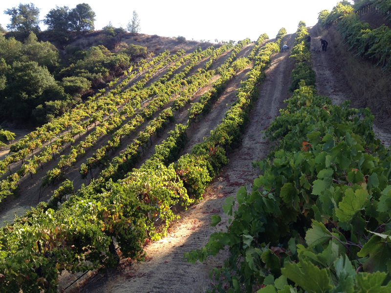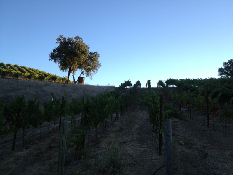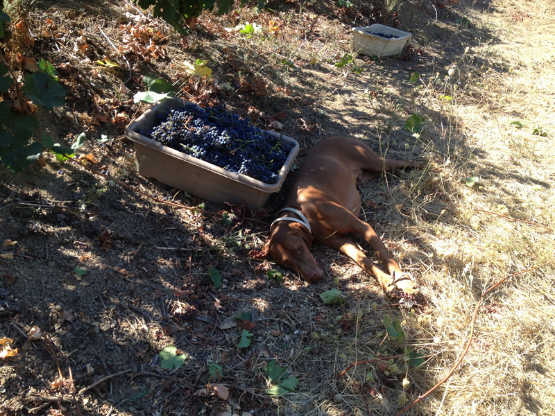 10/8/13 PICKED 1.313 tons for William Wood and Noel Relyea into their 139 FWBs. Lots of raisoned fruit in this block C8 at Camalie. I'm thinking I should pick up the raisons and make wine out of them just to understand what the issue is with raisoned fruit. There is at least a few hundred pounds of raisons there, not to mention the other blocks.