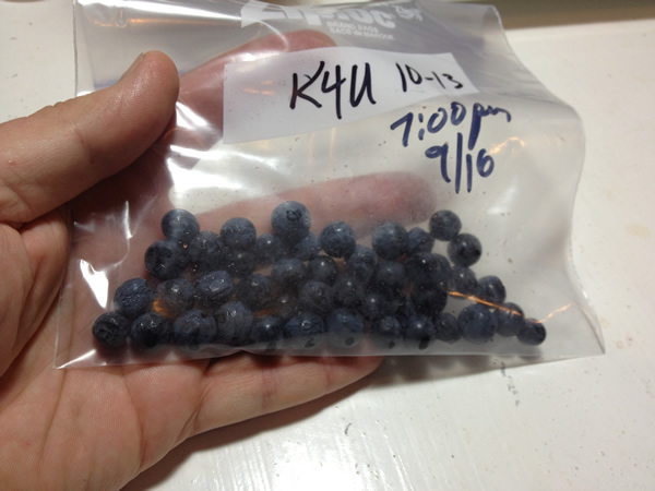 9/29/13 RAIN AGAIN. Started at 6:00pm, about .03" by 7:30pm and then it quit. No more rain now at 9:00pm as I write this. We'll have slightly wet conditions tomorrow picking K3L for David Tate. Rubissow scheduled their first pick of 4 tons for Tuesday bumping Eric Hagyard to later in the day.