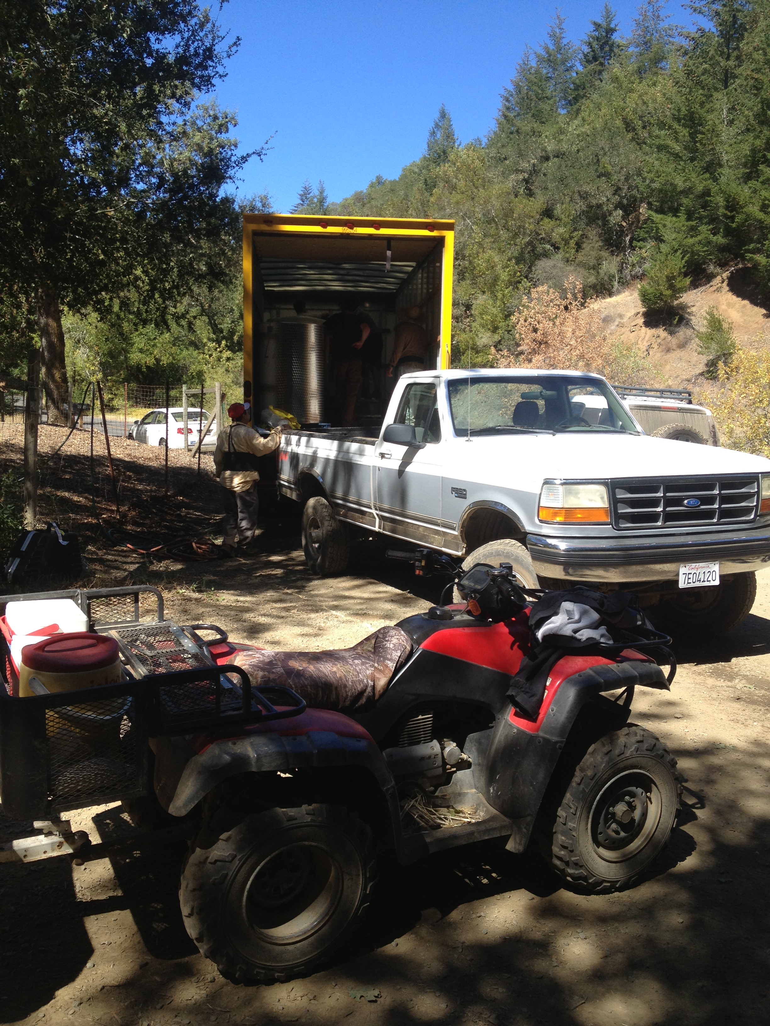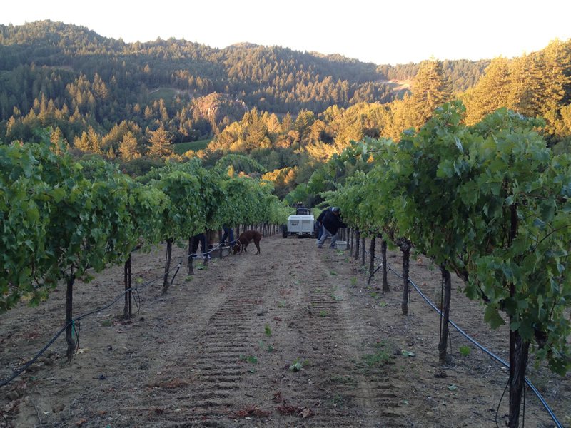 Saturday 9/14/13 | 408 Eastman Ln. Petaluma | ~5Camalie Boxes | Camalie Platform | PVM trailer. Left upper part of rows 2-4, ~100 vines for MVMV, .4T |