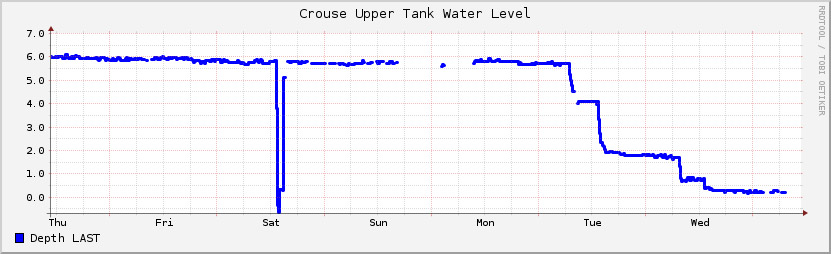 Installed visual tank fill level indicator on Crouse top tank. I was surprised I could buy Clear PVC that would glue just like the white stuff. Downside $3.50/ft.. Yes that's a fishing bobber. On the right is the new fangled approach which can be observed from any place on the planet with a web browser in addition to 20 ft. in front of the tank.