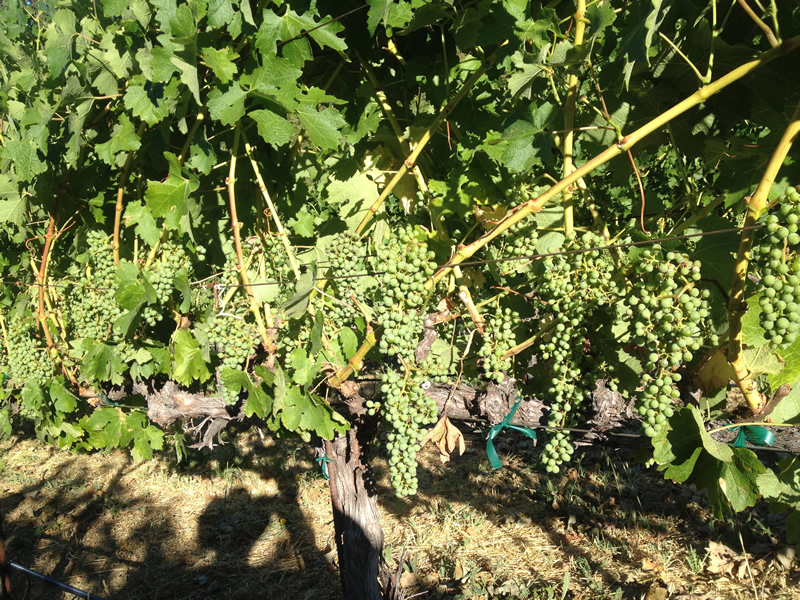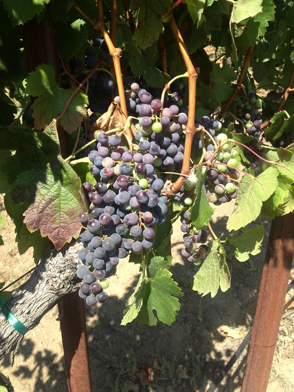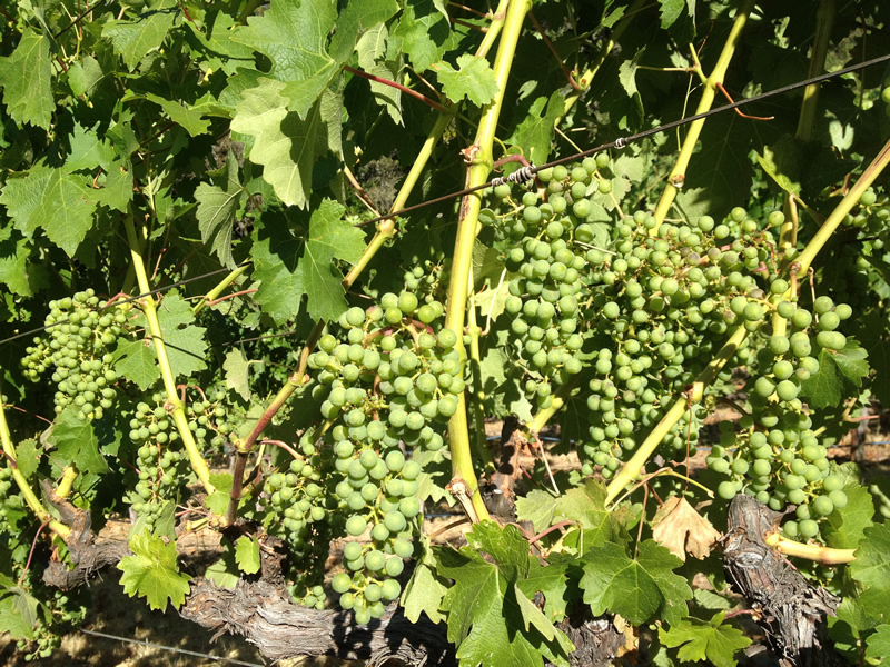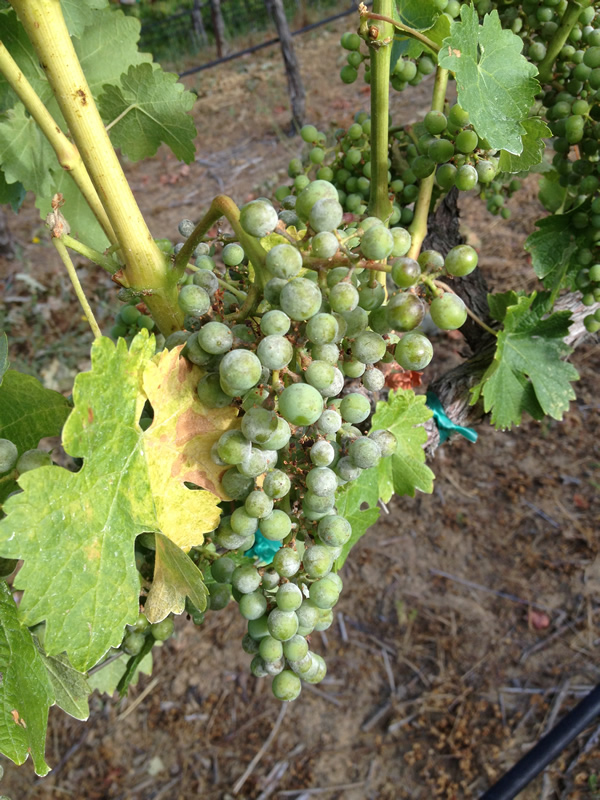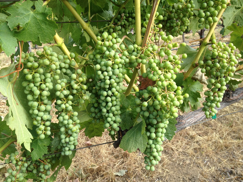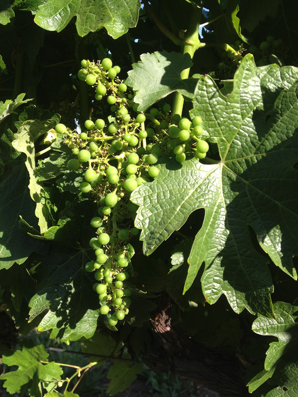 6/7/14 FRUIT IS SET. A great crop is on its way. We are happily ahead of schedule again this year. Check out the Cabernet Sauvignon berry sizes already in the photo below from Camalie taken the first day of June. Expect an early harvest unless climate change suddenly heads cooler for the rest of the summer.
