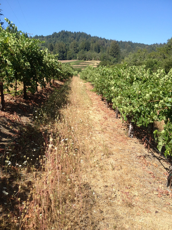 Photos below are from Camalie Block 3. Even our weakest blocks are looking better than they ever have. We have done a little hedging on some narrower rows to get the tractor through to spray for powdery mildew and will have to do more.