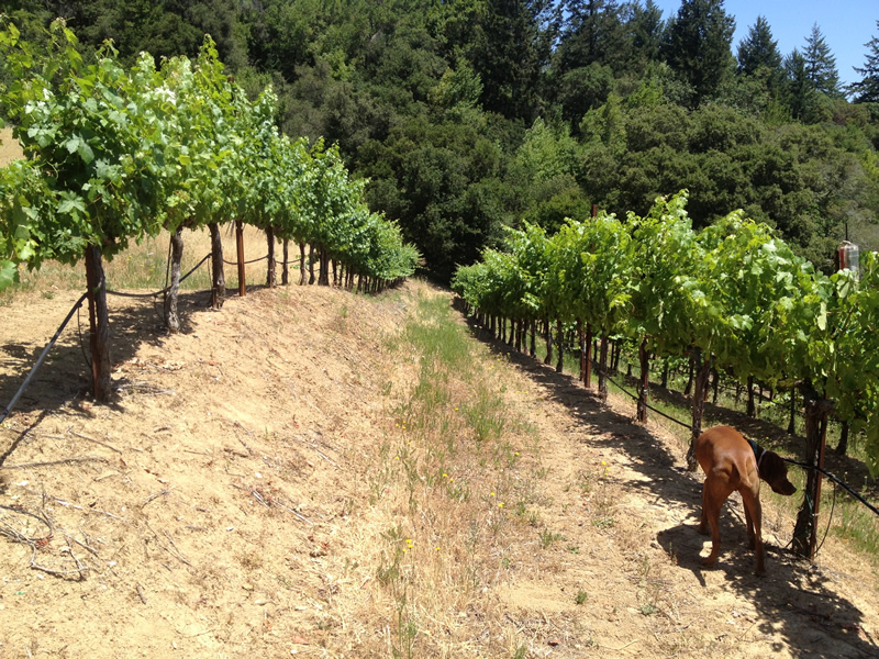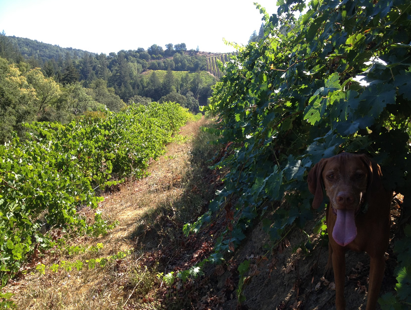 The deer seem to have been more vigorous in their reproduction this year like the vines. Yesterday I was driving down Mt. Veeder Rd. and had to slow for a pair of very young fawns not much bigger than my dog Jasper. Ramon said he saw a deer in Crouse Royal block. With the big canopies it would take a lot of deer to do significant damage at this point. We could actually use their help with the hedging.