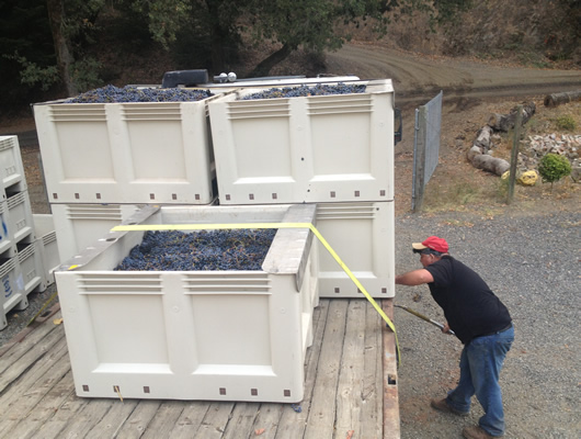 1.96 tons/acre 6.4 lbs./vine up 56% | Saturday 9/20/14 Picked | Thursday 9/12/13 | 408 Eastman Ln. Petaluma | Criste's New Boxes |