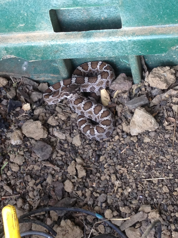 I have heard about rattle snakes in valve boxes but, this is the first time in 14 years of farming I have actually seen one. Fortunately he moved when I opened the box and I saw him, otherwise I would have opened a valve and got tagged.