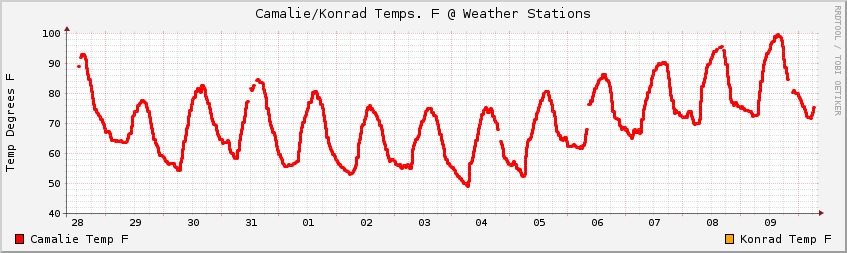 9/12/15 HEAT WAVE BREAKS after a week thankfully. From the curves below you can see that in addition to the high temperatures, both day and night, the humidity was very low, a double whammy for dehydration. You can see the humidity trippled last night after the second day of temps above 100F. Half the years we get no days over 100F on Mt. Veeder.