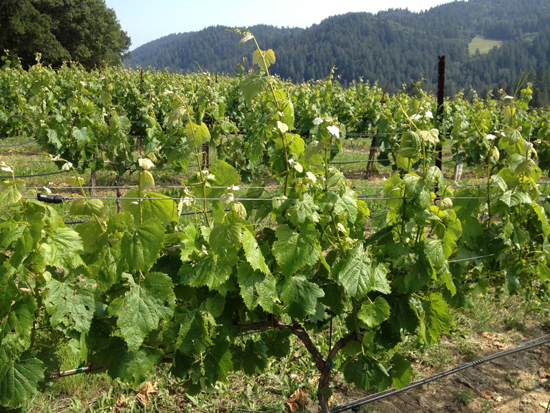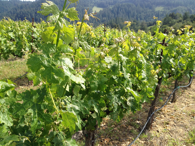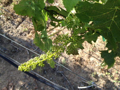 5/6/15 BLOOM is about 50% now in the Cabernet Sauvignon. Here are a couple photos from the top of Crouse Block 6.