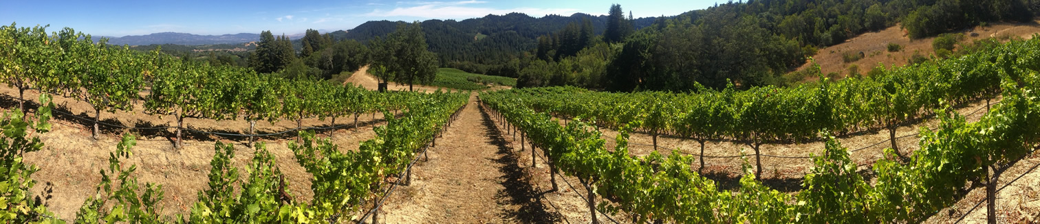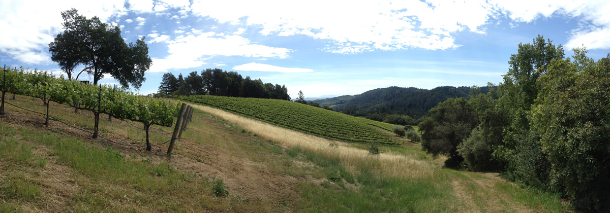 Below if a panorama from the top of K4. In general the vigor is right where we want it. The vines are slowing their growth due to having used up most of the water that was stored in the soil. They are feeling some water stress which is desirable to keep berry sizes small and the vigor limited. No sense in growing a lot of long canes just to hedge them off.