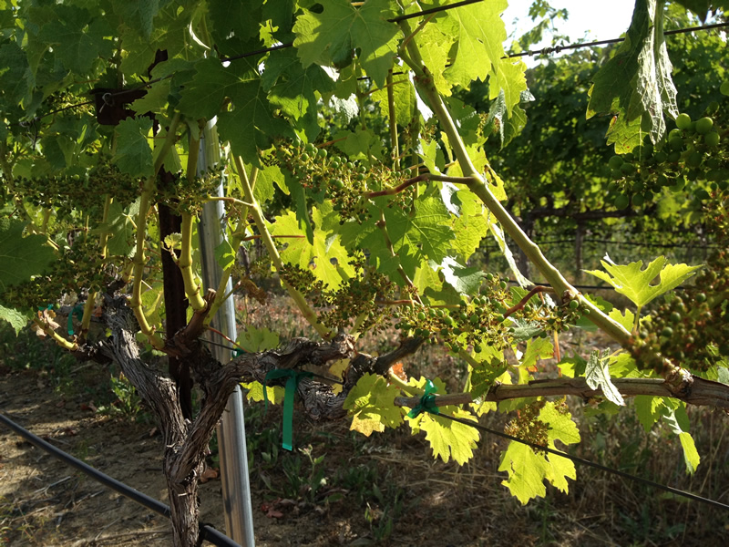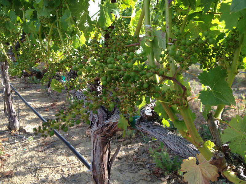 6/6/15 HEAT and IRRIGATION START. The cold during bloom was not good for us. The fruit set is "irregular" meaning there are some clusters far ahead of others which is likely to create more variance in the ripeness when we get down to harvest. Green drop will be especially critical this year as it will be the best opportunity to tighten up the distribution. Yields are likely to be reduced depending on how aggressively we drop fruit to tighten up the distribution of maturity. Here are some photos to show you what I am talking about. This issue has affected all of the vineyards we are farming.
