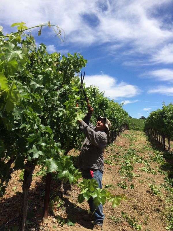 Above and below are from Konrad K1. Note that Ramon's crew has finished leafing in the fruit zone at all of the vineyards now. We remove leaves from only one side of the vines, either the North side if the rows run East West or from the East(morning sun side) if the rows run North South as they do in K1. These photos were taken in the early evening around 7:00pm.