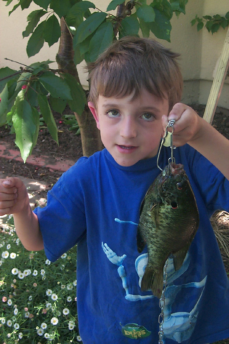 Cameron enjoyed the fishing. Here he is with his biggest Blue-gill. We caught about 30.
