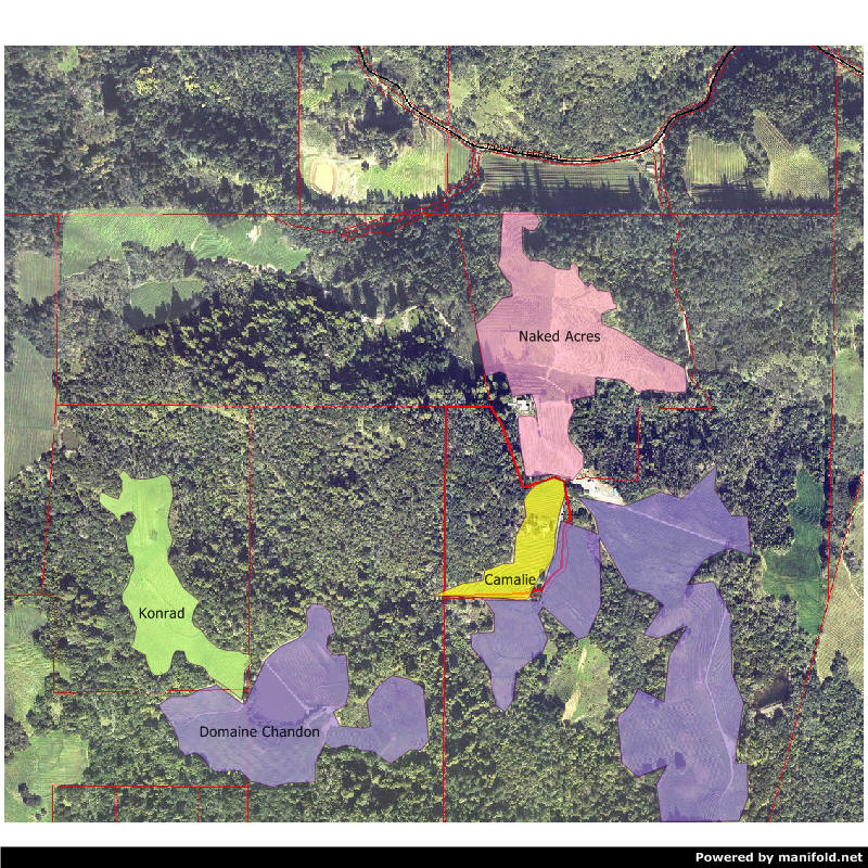 Below is a map showing four vineyards where 25 nodes are currently placed for soil moisture acquisition. All data is available through a single satellite web connection at Camalive Vineyards.