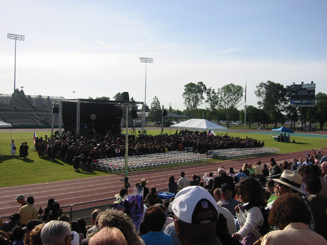 The Graduation ceremony was held at Hornet field, Sacramento State University, 5/25/02.