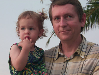Here is Cameron the cameraman himself. from the walkway above the canal and monorail not far from our room.