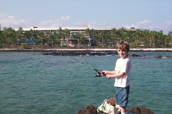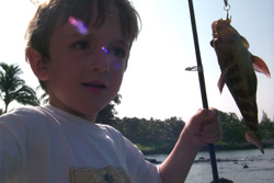 This is where he caught this fish with his new birthday Rod. We had to be careful not to snag the sea turtle which swam by several times.