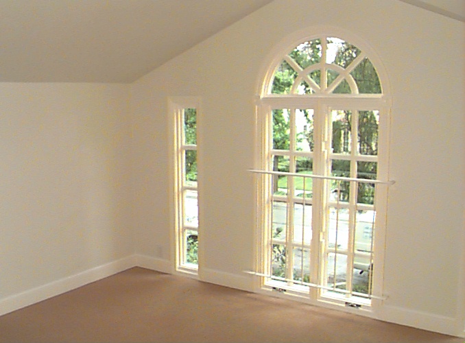 Master bedroom view toward the corner. The curtain rods are not up yet. Look at the shine on those floors.