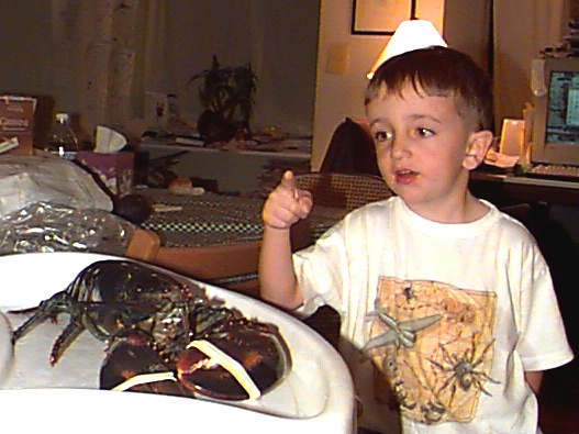 Cameron with lobster friend bargaining for another 1 minute reprieve.